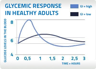 The Glycemic Index (GI), measures how a food containing carbohydrates raises blood glucose levels.